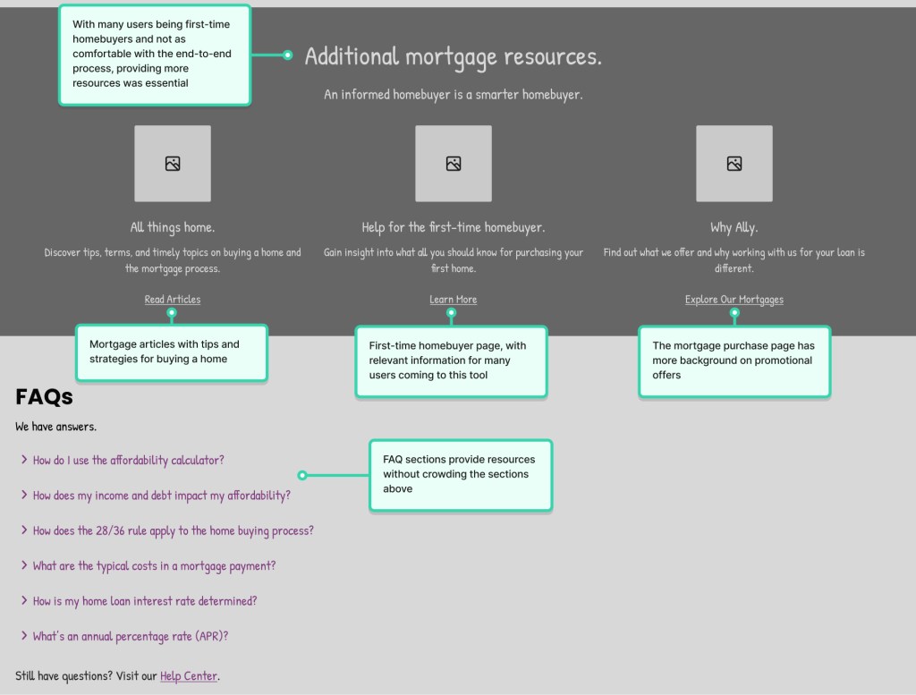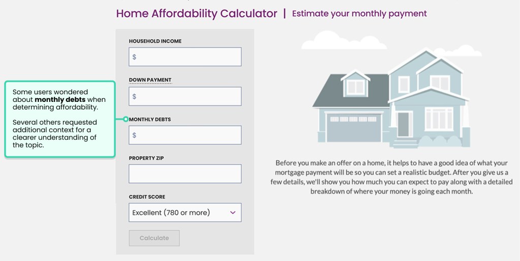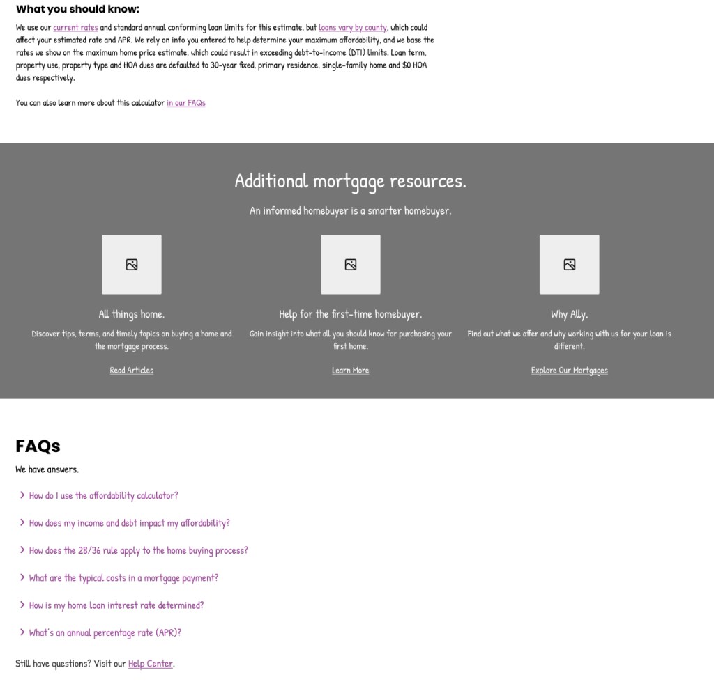 The affordability calculator was outdated, and some functionality felt hidden from users. For first-time homebuyers, users had questions and didn’t have enough context to feel comfortable moving forward to the loan application process.
